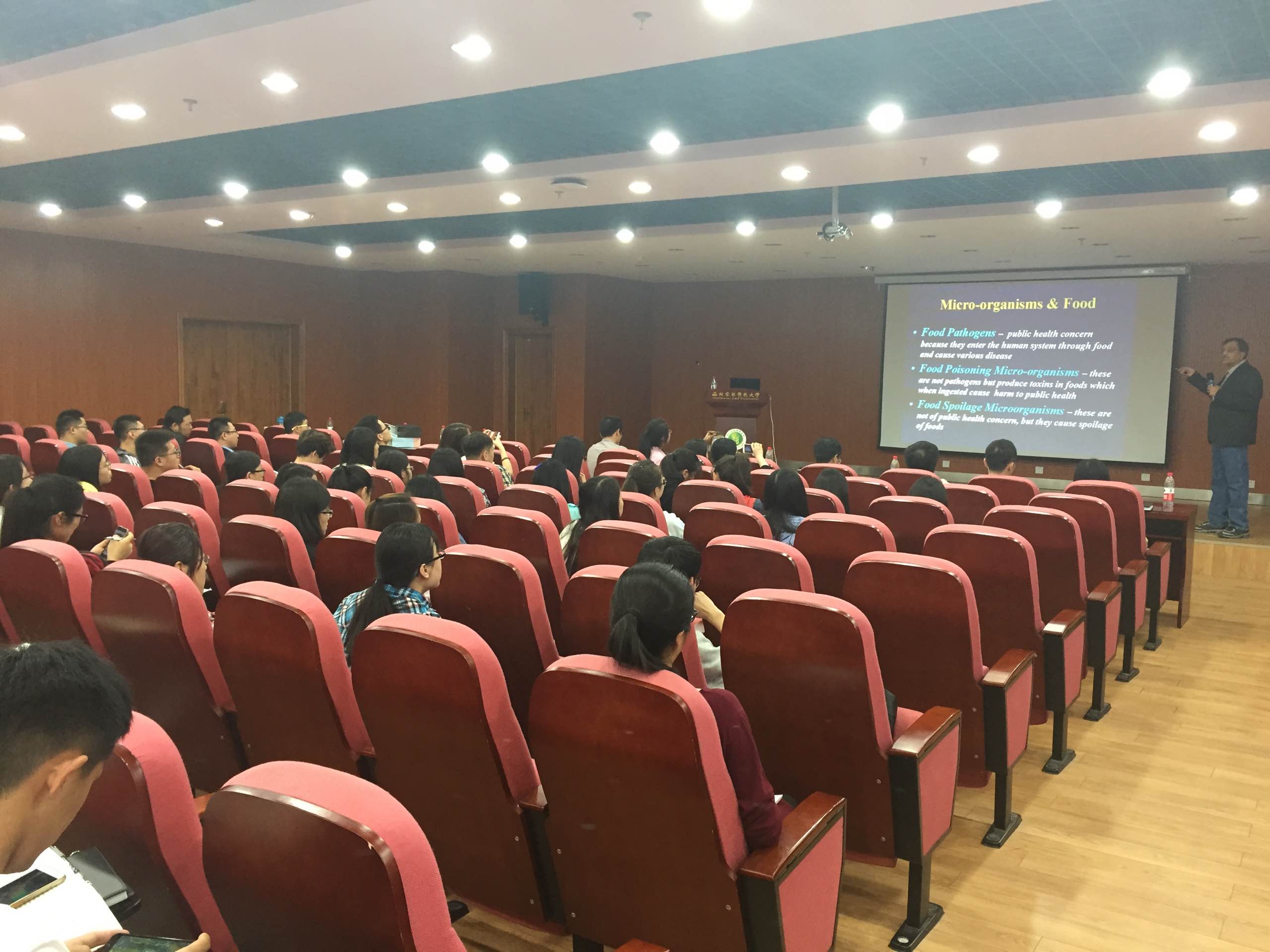 Ramaswamy教授为我学院师生作了“Road Map of Sterilization from Appert to Paacal”的学术报告。讲授了高压杀菌、微波加热、欧姆加热等食品杀菌技术的最新进展,详细介绍了超高压技术的起源、发展以及研究现状,展示了超高压技术在食品贮藏和加工中的应用及最新研究成果。Ramaswamy教授还向大家讲授了SCI论文写作的技巧及写作时的注意事项,针对大家提出的问题进行了详细的解答,鼓励大家专心做科研,认真写文章,并表示非常欢迎师生到加拿大麦吉尔大学进行学习交流。