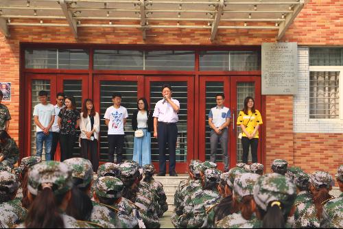 首先,2019级辅导员王坤为同学们一一介绍了前来慰问的领导老师以及团委学生会主要干部。随后,张振华亲切地与同学们进行交谈,他带领同学们一齐追忆了艰辛但美好的军训生活,并向同学们阐述了他眼中的军训背后所带来的价值意义。
