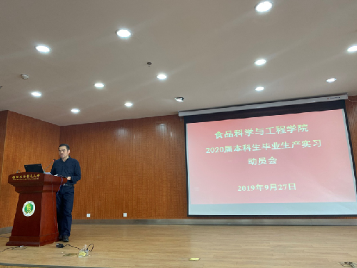 9月27日,学院组织2016级学生召开毕业生产实习(统一安排)动员大会。学院毕业生产实习由自主安排和统一安排两部分组成,参加统一安排的64名16级本科生参加了动员会。本次实习由学院联系了杨凌和渭南的13家对接企业,有64名学生和7名指导教师参加,时间从2019年10月8日开始,到10月25日结束,历时3周。实习采用“集中参观+课题研究+课题汇报”方式进行。由企业提出13个课题,由学生以小组形式完成。各组均有指导教师,每组学生4-6人。计划10月8日组织所有实习学生集中赴渭南市相关对接企业集中参观,同时各小组带回对接企业的技术性课题,返校工作,3周内取得成果,于10月25日向导师组汇报,10月28日后各小组指导教师带领各组学生赴企业进行汇报。