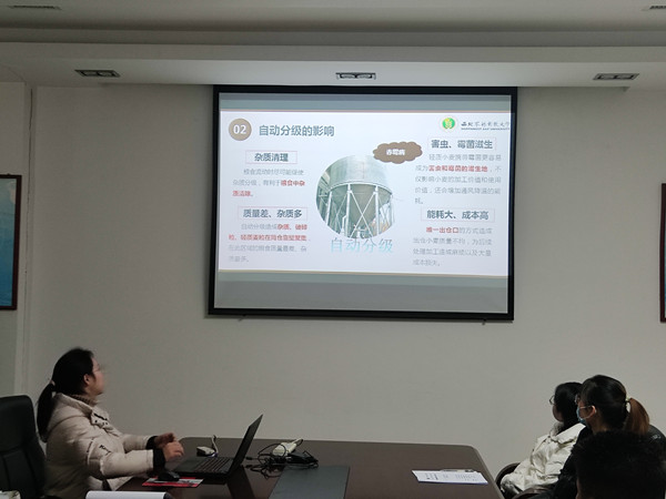 西瑞面粉有限公司李向阳副总经理介绍了企业发展概况及技术需求,并对食品学院此次的交流汇报表示欢迎。汇报过程中,4支团队围绕小麦加工过程中微生物控制技术、生鲜面条制品的保鲜技术、面粉加工过程中杂质的综合利用及立筒仓储粮过程中破除自动分级等问题进行了文献综述汇报,提出有效的建议。