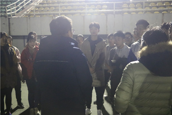 12月2日下午6时许,食品学院党委副书记汪勇攀、团委书记兼学工秘书魏月媛、体育辅导员孟月婷、李永华、学院全体辅导员以及团委学生会干部来到田径场慰问冬训运动员,为正在筹备本周末校冬季长跑对抗赛的运动员们送来温暖,加油鼓劲。