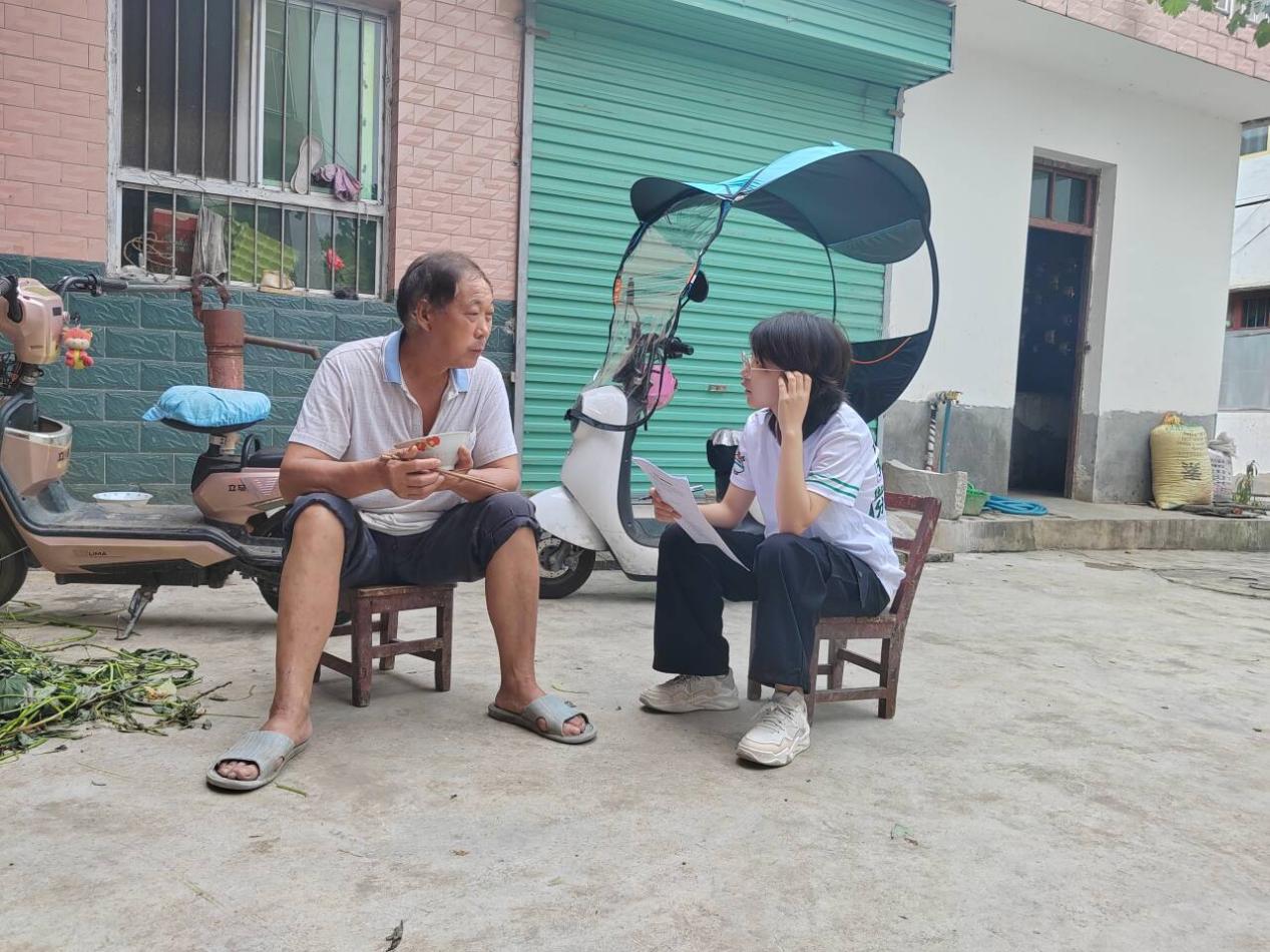 图为调研团与草坝村村支书刘煜华面对面交流。崔慧涵 供图