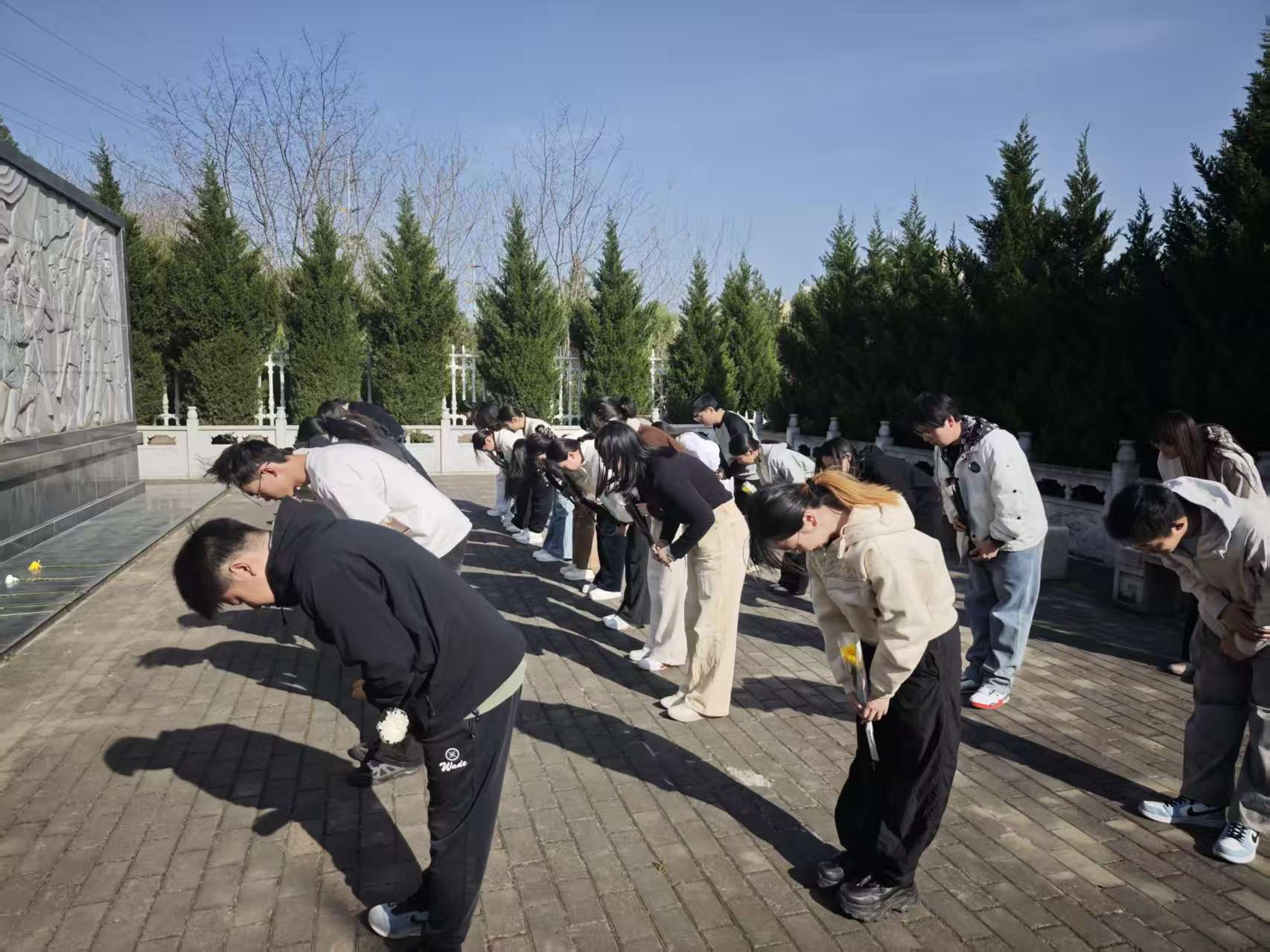 陵园内苍柏环绕、丰碑巍然,庄严肃穆的氛围萦绕全场。在革命烈士纪念碑前,师生代表列队整齐、神情肃穆。仪式开始,全场肃立、脱帽,向为革命和建设事业英勇献身的烈士们默哀三分钟,以最诚挚的敬意追思先烈们的不朽功勋。默哀毕,全体人员向革命先烈三鞠躬,一鞠躬致敬英烈,再鞠躬缅怀忠魂,三鞠躬传承精神,寄托深切哀思与崇高敬仰。