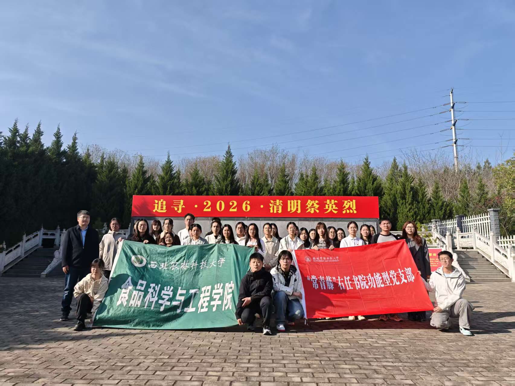 清明将至,哀思悠悠。为深切缅怀革命先烈丰功伟绩,传承红色基因,厚植家国情怀。2026年4月1日下午,食品科学与工程学院团委组织我院师生代表赴杨凌烈士陵园,开展“清明寄哀思,初心勇传承”主题公祭活动,以庄重仪式致敬先烈、汲取奋进力量。食品科学与工程学院刘夫国教授、团委副书记李颖老师参与本次活动。