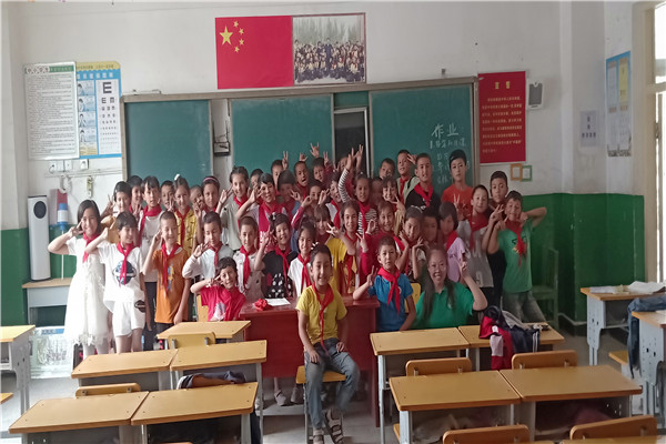 早上十点,队员们刚来到学校,就被昨天家访过的学生们一眼认出。孩子们热情的向队员打招呼,向身边的同学们炫耀到:“这个老师我见过!”。他们分明是想让队员们做他们的“班主任”。可惜的是,由于当天的课程安排没有下发,队员们只能堆着笑说:“我们尽量。”