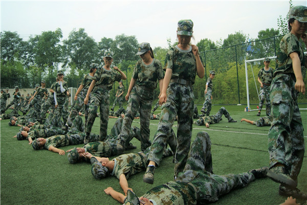 烈日下抱腹正步动作练习