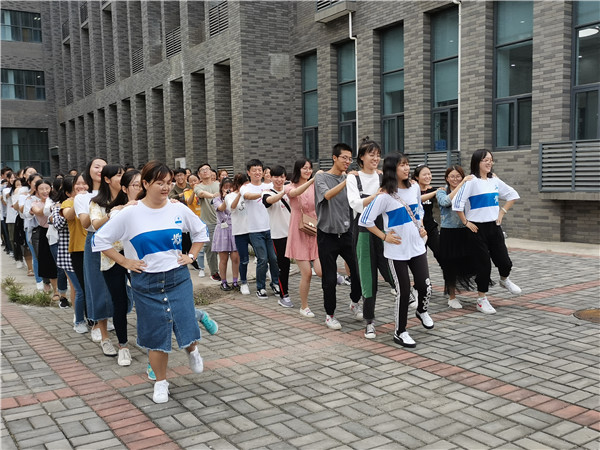 为加强研究生身体素质、培育良好的心理素质、树立健康有益的生活方式和观念,新生班级见面会结束后,各班兼职班主任带领新生进行素质拓展活动。活动共设立三个环节:“大风吹”、“相逢是缘”与“集体兔子舞”,研究生新生紧密配合、互帮互助、团结协作,心情愉悦并井然有序地进行各项游戏。活动场地不时传来阵阵欢声笑语、气氛热烈、人心澎湃,不知不觉间,彼此间的陌生感便被浓厚的友谊之情所代替。2019级硕士研究生张依说,“此次素质拓展活动令人印象深刻,和新同学初次见面的忐忑之情也在活动中消失殆尽,每个活动环节中大家的密切配合、相互助力,进一步增进了新生之间的友谊,同时也对大家的心理建设、身体素质、环境适应以及人际交往方面起到了积极作用。”