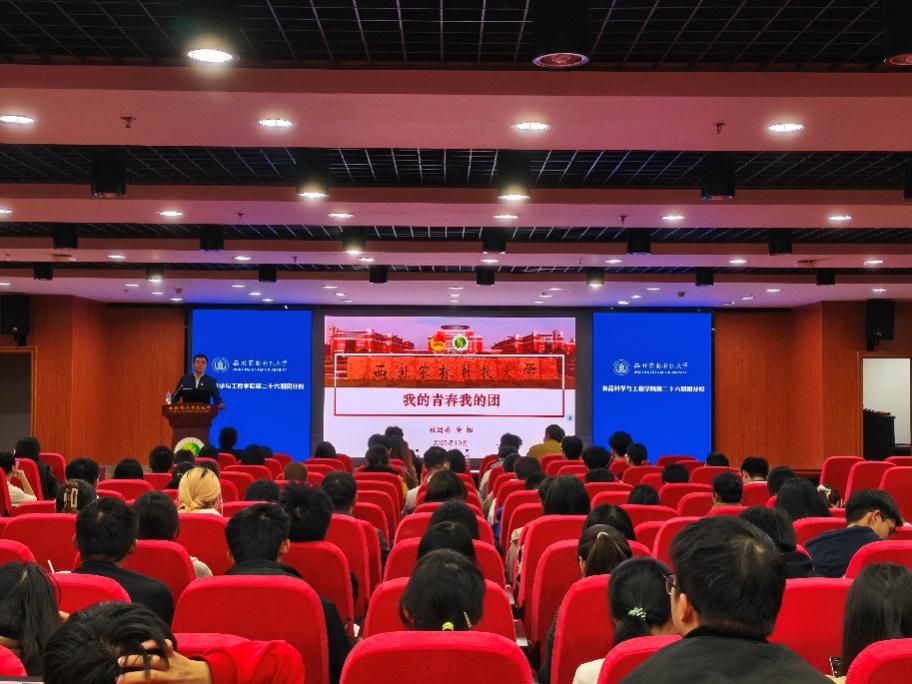 为扎实推进学习习近平新时代中国特色社会主义思想主题教育,强化团员青年思想引领,10月27日晚,西北农林科技大学食品科学与工程学院第二十六期团分校开班仪式暨第一次主题团课在食品楼六楼荆楚报告厅圆满举行。校团委副书记安相、院团委书记张楠春、辅导员刘鸿运和第二十六期团分校全体学员参加仪式,学院团委副书记李颖主持会议。
