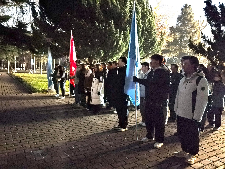 为深切缅怀南京大屠杀惨案中遇难同胞及抗战英烈,传承民族记忆、凝聚复兴力量,在国家公祭日之际,食品学院联合理学院、化药学院于2025年12月15日上午,在北校区三号教学楼前升旗台庄严举行“致敬先烈守初心,砥砺奋进担使命”主题升旗仪式。