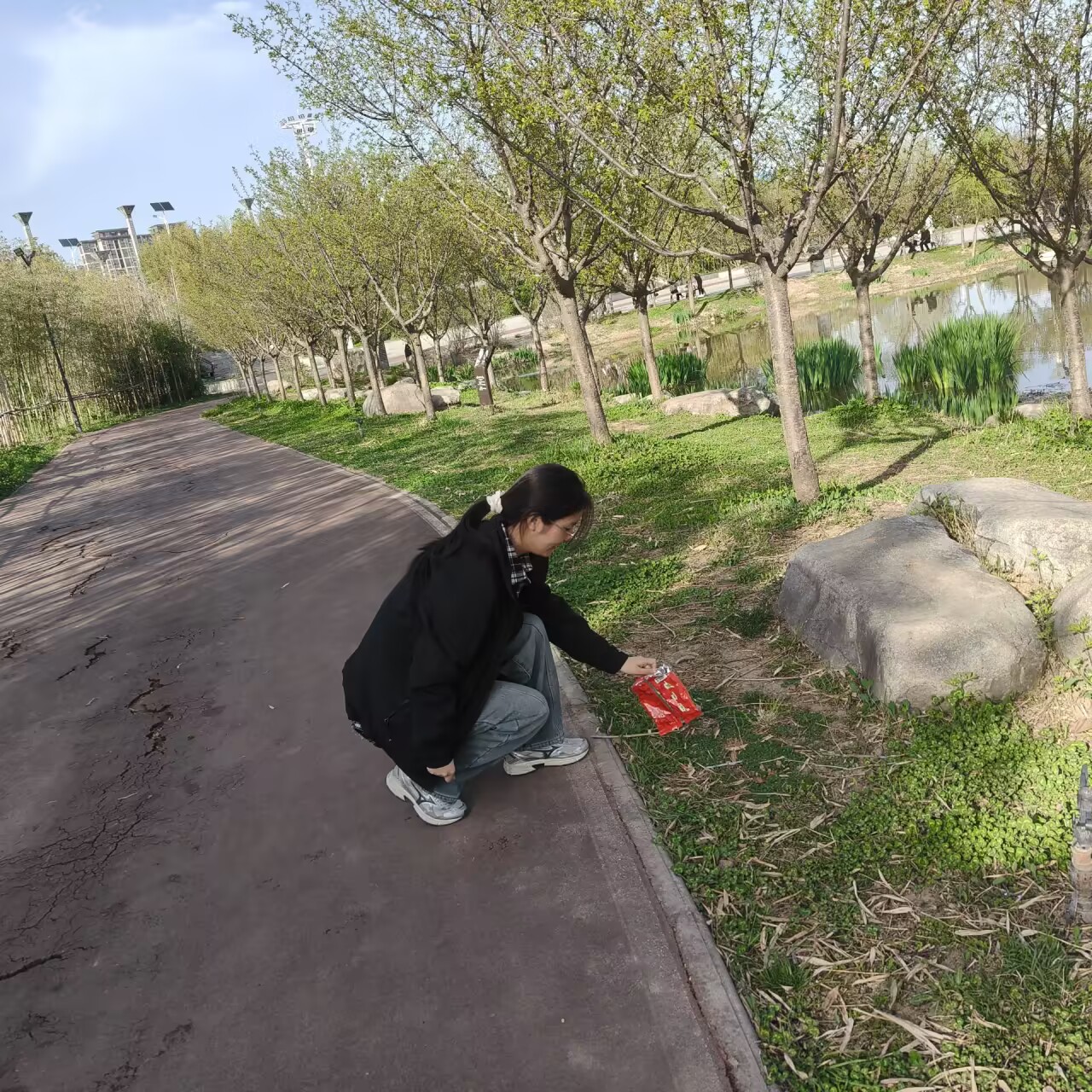 3月31日下午14:00,志愿者们准时在渭河公园入口集合签到,有序领取清洁工具与饮用水。活动负责人李想向大家讲解活动流程、安全注意事项及新时代雷锋精神的实践内涵,强调文明作业、安全作业、规范作业的重要性。随后,志愿者们被分为若干小组,在工作人员带领下前往指定区域开展清理工作。大家手持工具,认真捡拾沿岸塑料瓶、塑料袋、烟头、纸屑等生活垃圾,细致清理草丛、步道等卫生死角,全程分工明确、协作高效,充分展现西农学子不怕脏、不怕累的奉献精神与责任担当。