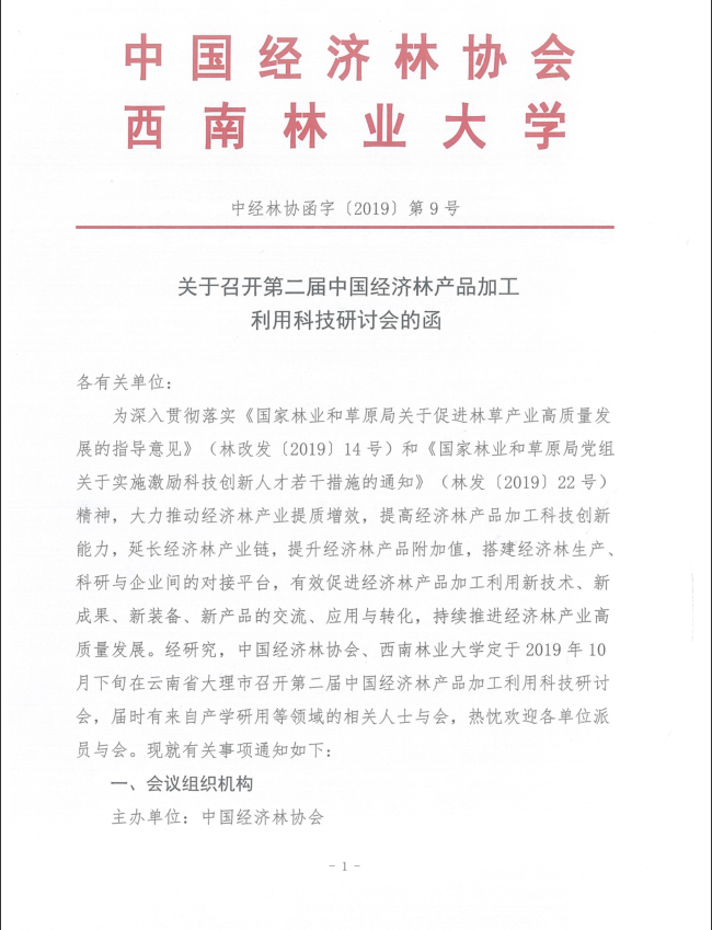 关于召开第二届中国经济林产品加工利用科技研讨会的函